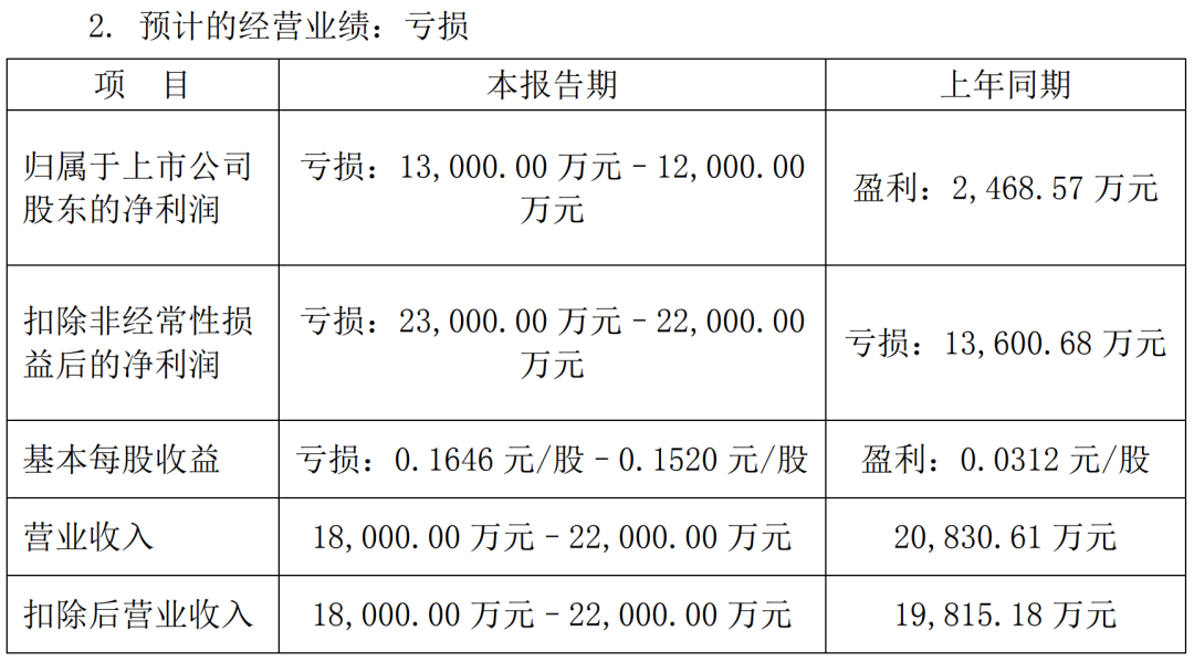 业绩:报告期内,预计归属于上市公司股东的净利润为亏损1.2亿-1.3亿元,较上年同期由盈转亏,扣除非经常性损益后的净利润为亏损2.2亿-2.3亿元,同比亏损扩大。