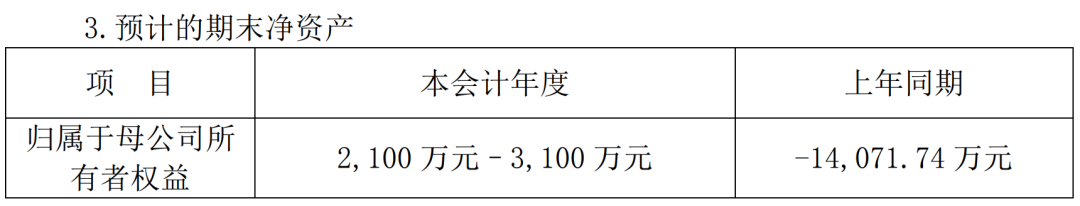 据业绩预告披露,报告期内,公司实际控制人控制的其他企业向当代东方捐赠股权资产及现金资产合计3.21亿元,预计公司2021年期末归属母公司所有者权益为正数。公告中也披露了具体的净资产数额,预计为2100万-3100万。