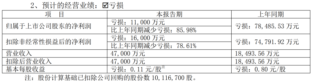 业绩:报告期内,预计归属于上市公司股东的净利润为亏损1.1亿元,较上年同期亏损收窄。