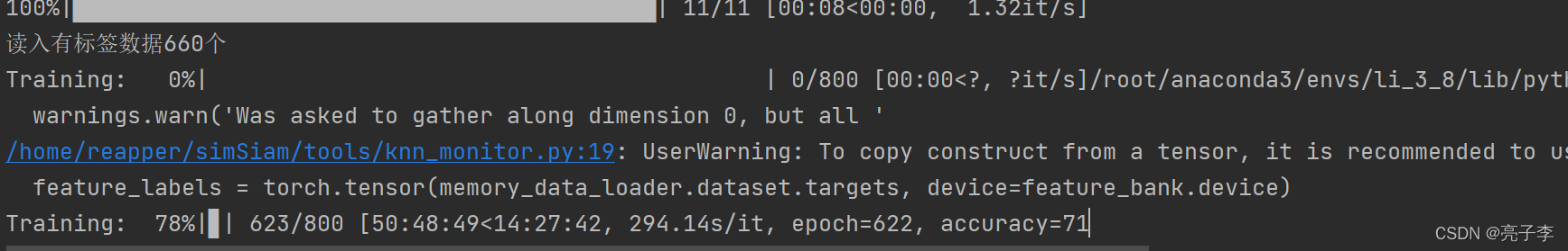 然后定义好后 就是一个普通的训练过程了 。 值得注意的是 model是eval模型 也就是他是冻住的,参数不改变。而classfier是可以改变的, 梯度回传也只回传分类头的梯度, 这里就只训练分类器。