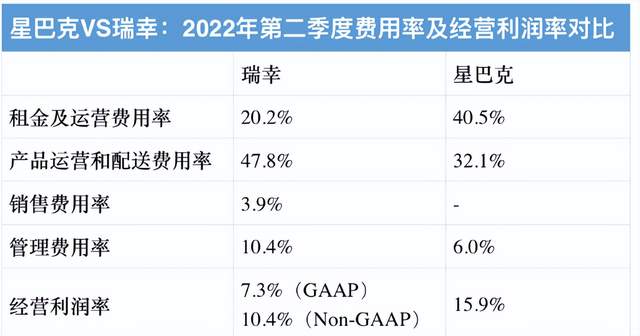 而从一杯现磨咖啡的成本构成来看,原材料成本约占总营收的25%-30%,门店运营成本占比高达40%-50%。但抛开疫情因素不谈,对比星巴克和瑞幸费用率和经营利润率来看,瑞幸除在租金以及运营费用率上低于星巴克外,其他多项费用指标均高于星巴克。最终结果是星巴克15.9%的经营利润率仍是高于瑞幸。