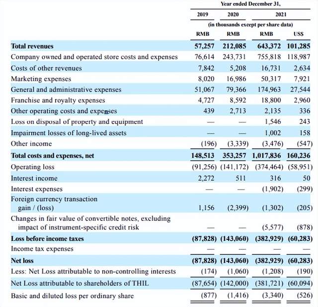 首先从Tims来看,自身的盈利依旧成谜。按照Tims中国区招股书来看,2019至2021年,Tims中国的净亏损分别为8782.8万元、1.4亿元和3.8亿元。