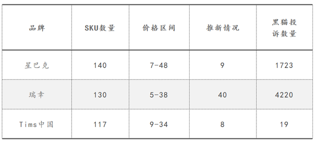 作为快消品行业之一的咖啡,不管商业模式如何创新,其本质上也必须要回归到产品本身。对比三家的产品后不难发现,星巴克在商品SKU数量上、价位上都明显的高于瑞幸和Tims。