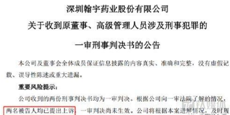 1月17日,翰宇药业公告了公司前总裁袁建成等人挪用资金案的进展。