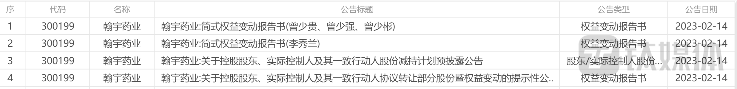根据公告,翰宇药业控股股东、实际控制人曾少贵及其一致行动人曾少强、曾少彬于2023年2月13日与李秀兰签署了《曾少贵、曾少强、曾少彬与李秀兰关于深圳翰宇药业股份有限公司之股份转让协议》。曾氏三兄弟拟通过协议转让方式共同向李秀兰转让其持有的翰宇药业股份合计4416万股,占上市公司总股本5%。本次股份转让的价格为协议签署日前一交易日翰宇药业收盘价的80%,即10.248元/股,交易总价款为4.53亿元。