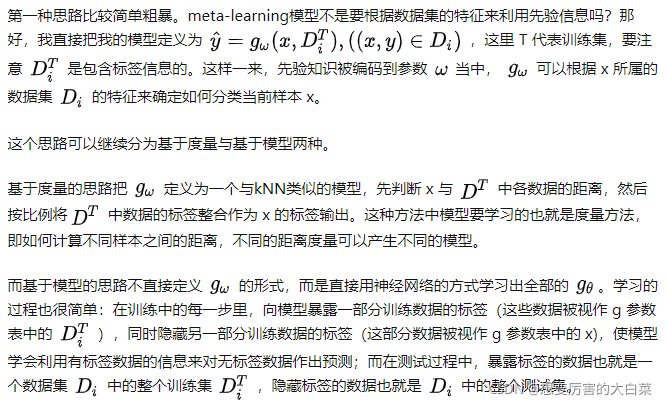 然后根据解决方案的建模方法不同,meta-learning可以分为两种思路:
