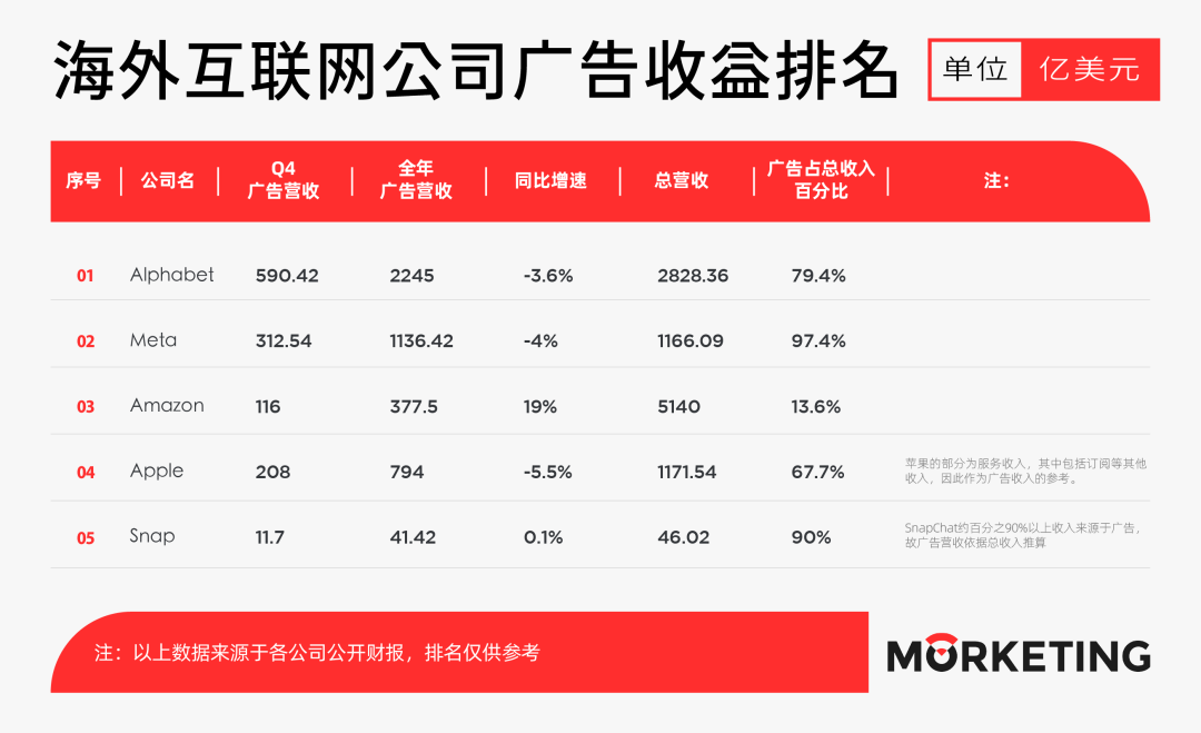 于是这种挑战性也很快反应在各家公司第四季度的财报当中去了,甚至可以说第四季度在线广告的衰退直接让除了亚马逊和苹果之外的全部海外互联网科技公司遭遇了新一轮的重大挫折。