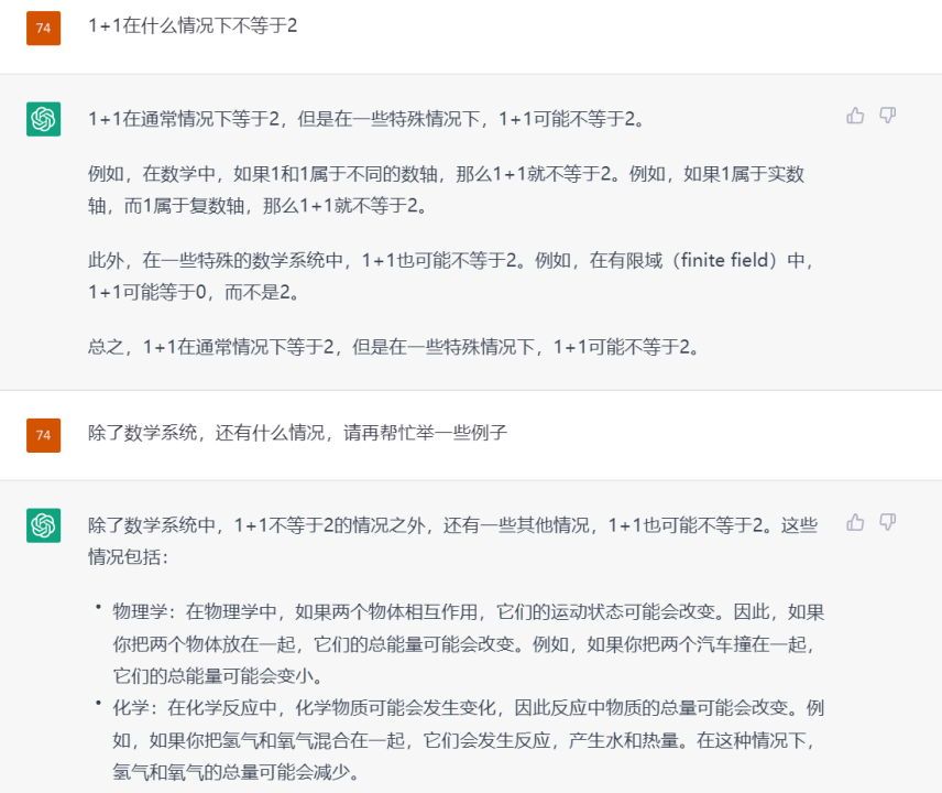 第三,ChatGPT是一个“能说会道”的AI。它具有连续多轮对话的能力,回答问题时会自动结合上文语境去调整输出的回复,这也就意味着用户可以围绕某一个特定话题和ChatGPT展开一长串的讨论,只要你有足够的时间和耐心,来一场秉烛夜谈也不是什么难事。