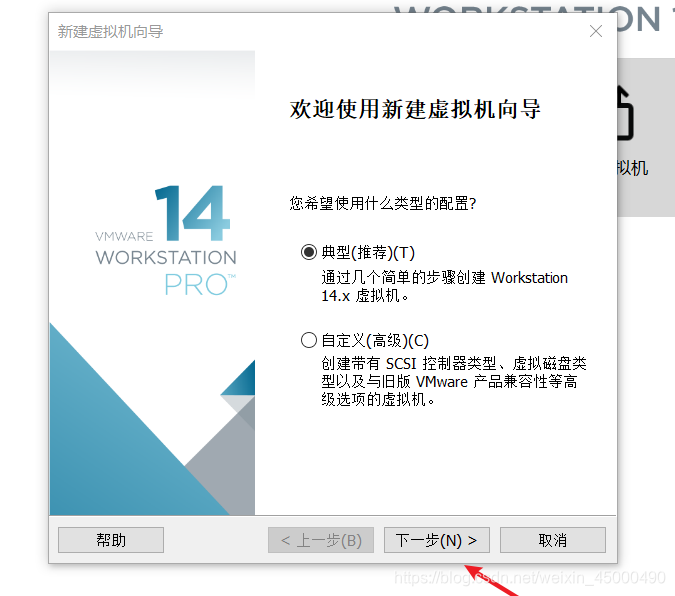- 打开VMware点击-----创建新的虚拟机弹出窗口选择典型安装即可----下一步: