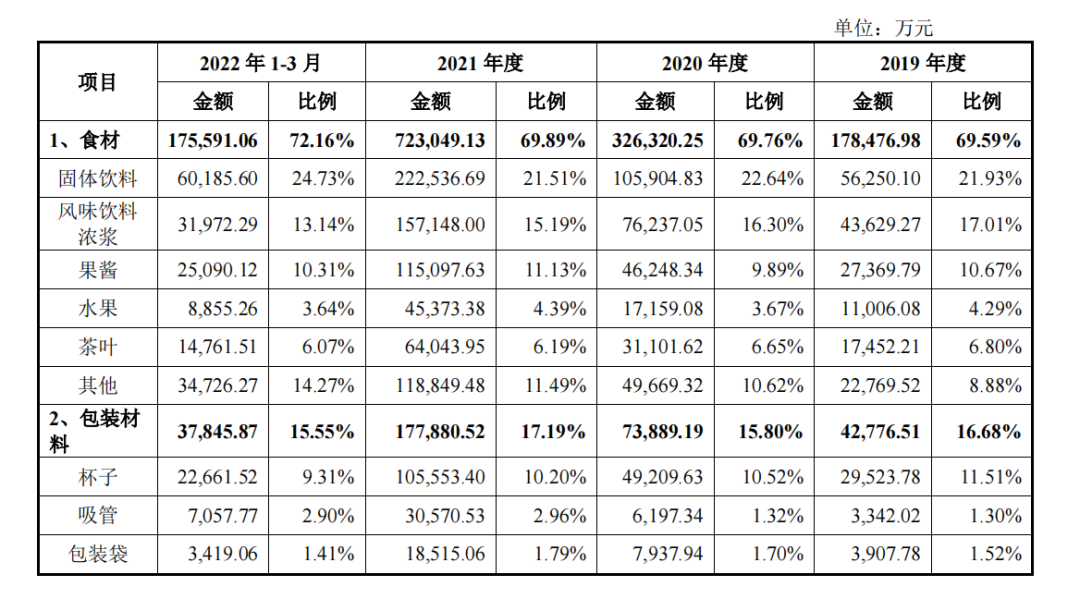 (图:蜜雪冰城招股书(主要产品销售金额情况))