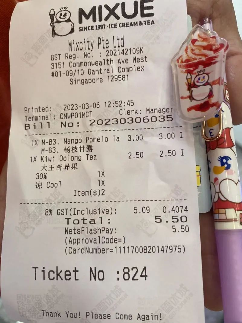 (图:消费满4新币获赠一支雪王造型的圆珠笔)