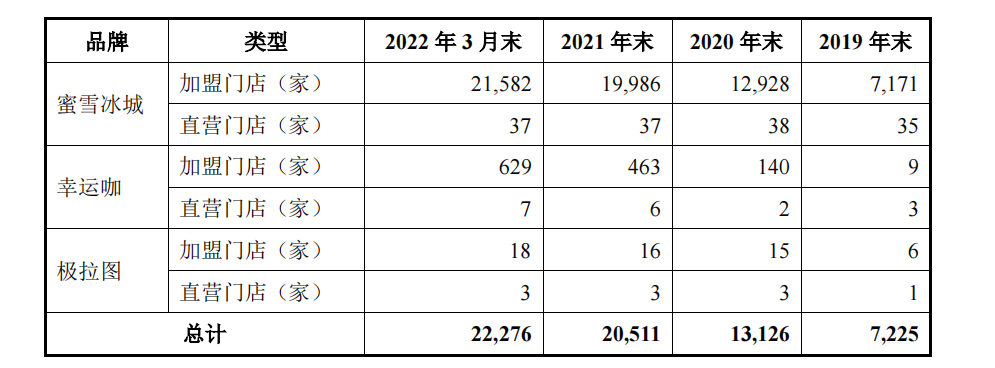 (图:蜜雪冰城招股书(各品牌门店数量))