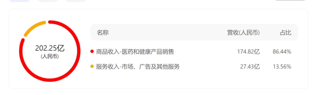 京东健康的相关收入更高,在2022年半年报中,包括药品和血氧仪在内的健康产品收入高达174亿元,占比超86%。