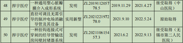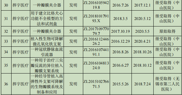 具体来看,60项境内专利中的12项为发明专利,其中有11项发明专利是从中山医院或无锡市第二人民医院继受取得,仅有1项为原始取得。