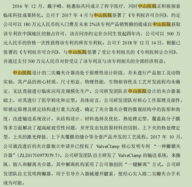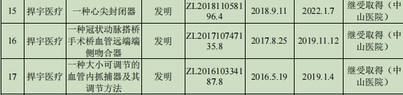 钛媒体APP注意到,ValveClamp的专利系捍宇医疗收购而来。招股书显示,捍宇医疗曾于2018年12月以总对价500万元向中山医院收购Valve Clamp的相关专利。