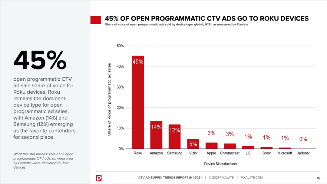 Roku的程序化投放广告在2021年上半年就占整个市场的45%