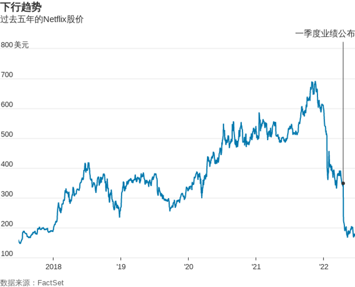 这个流媒体巨头在去年11月份触及股价最高点近700美元之后“飞流直下三千尺”,短短6个多月就跌到不足180美元,仅剩峰值的四分之一。