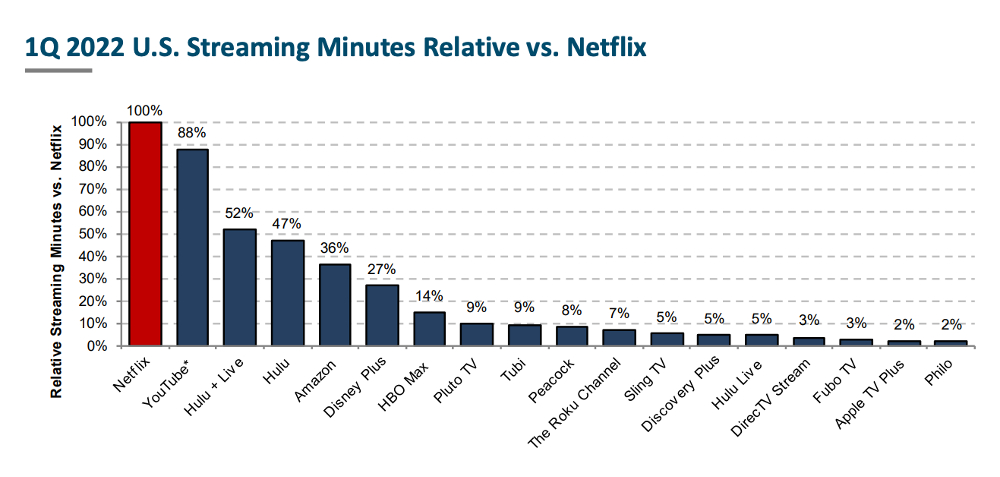 2022年第一季度美国流媒体用户消费时长比较