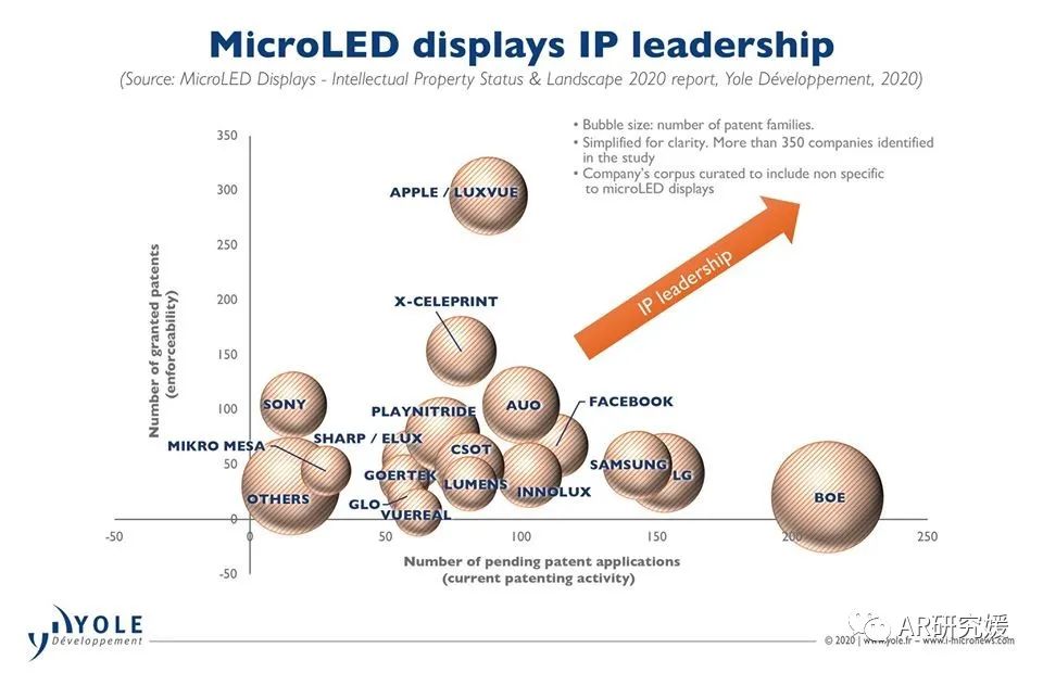 来自2020年Yole报告,Apple已授权MicroLED专利遥遥领先