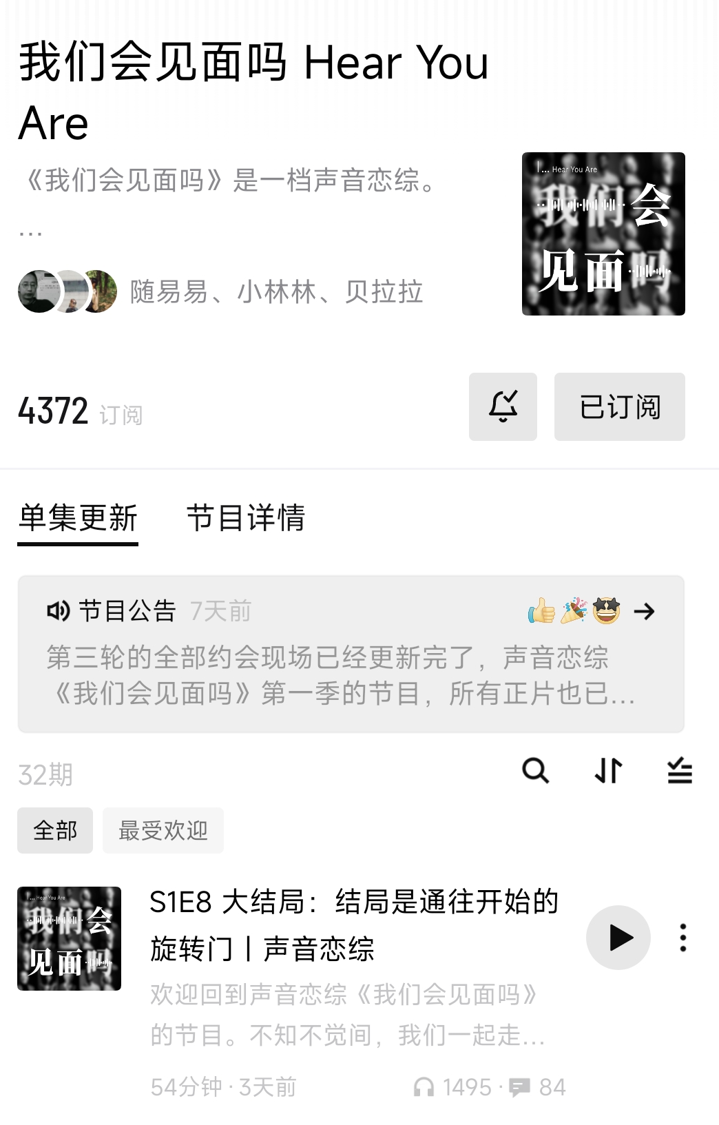 作为网红播客综艺,截至整季节目播出结束,《我们会见面吗》的订阅量仍旧在5000以下,订阅量与声量难以达成“正相关”。