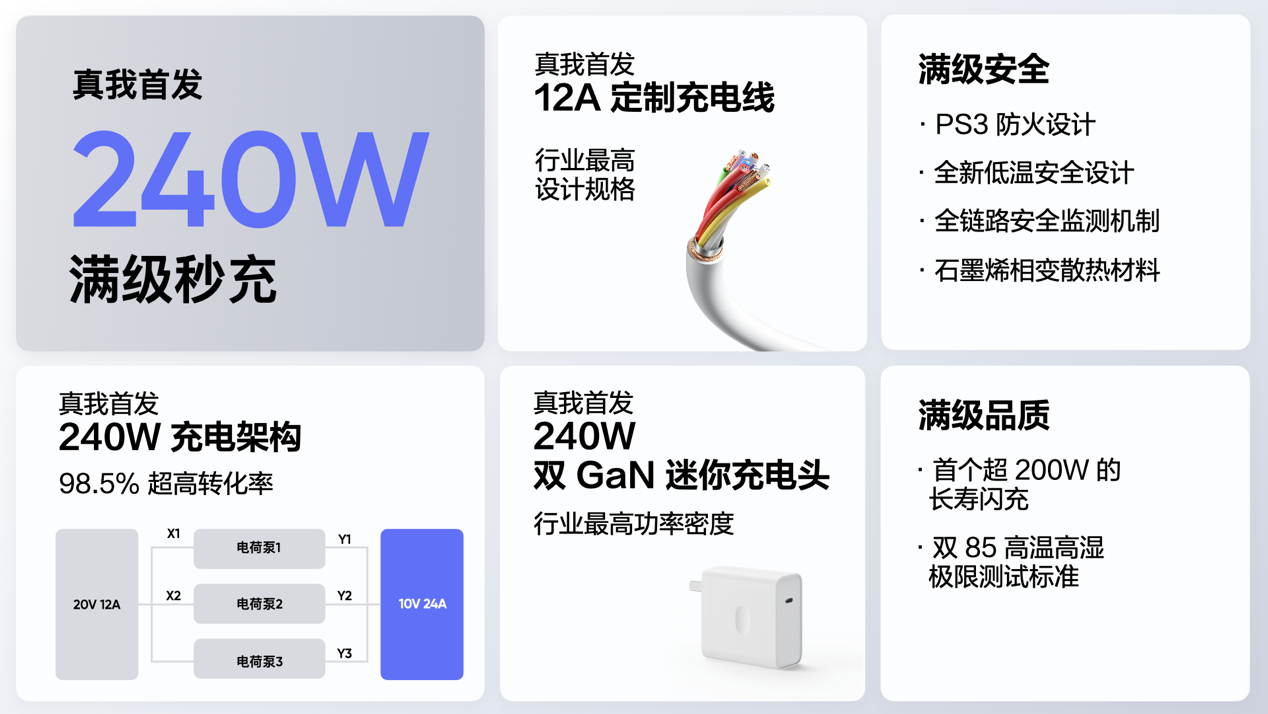 为实现240W满级功率,真我带来三项行业首发的闪充技术。