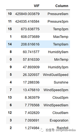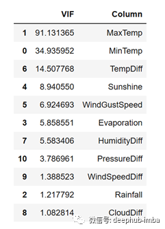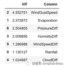 现在让我们删除VIF值大于5的特性。下面是这样做的代码和结果: