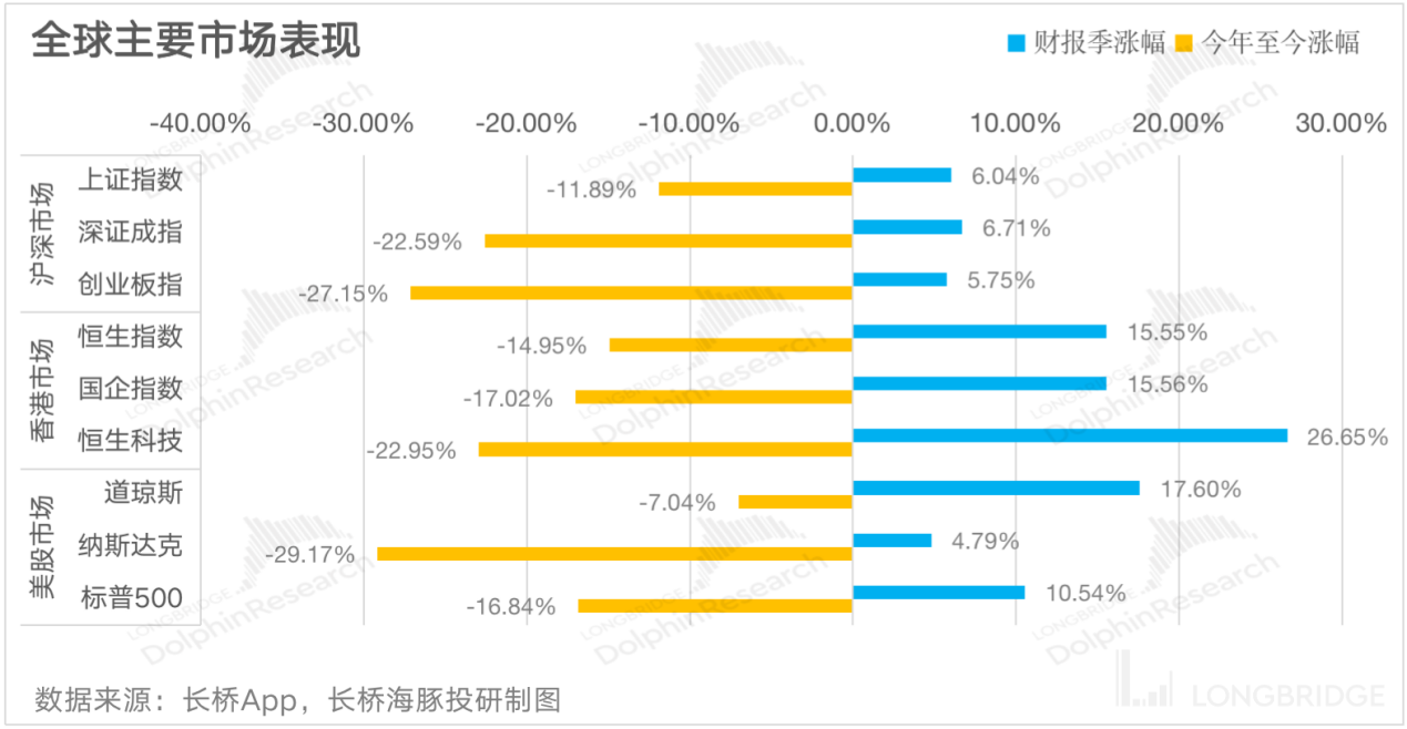 2022 年至今即将走到终点,而回过头来看今年的市场表现,港、美和沪深市场均出现不同程度的大幅下泄,纳斯达克指数年初至今跌幅近 30%,资本市场人心惶惶。但好消息是,自 10 月 “至暗” 之后,随着 11 月疫情防控政策优化、美联储加息有望放缓等消息提振市场信心,全球各大指数在本轮财报季期间呈现不同程度的回暖趋势。