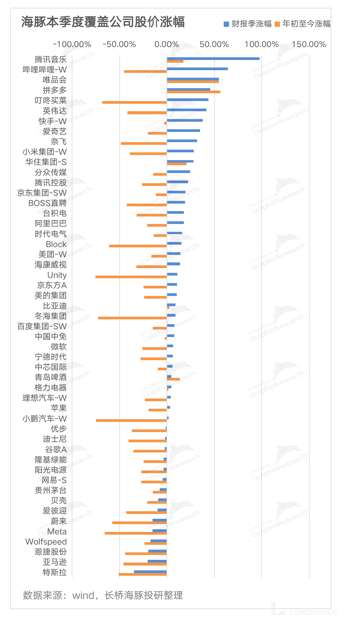 从个股上来看,Q3 海豚君一共覆盖了 51 家公司,其中 31 家公司在 2022 年 10 月 1 日-12 月 9 日这个财报期间上涨,另外 19 家公司季度期间下跌。