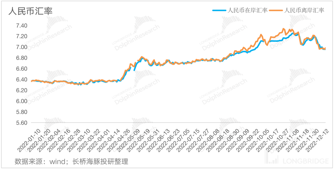 外围市场的放松及国内经济复苏预期加强的背景下,近日的离岸人民币汇率也在持续修复,12 月 5 日实现 9 月来首次破 “7”,汇率提升带动港股估值不断修复,中概资产也在持续飙升。
