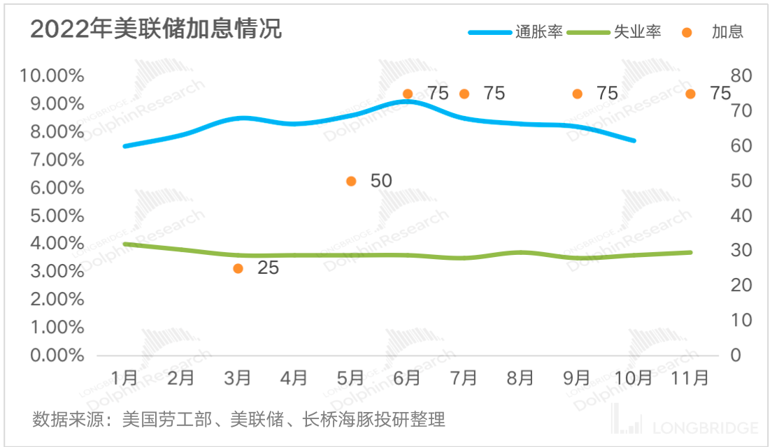1、美联储加息放缓,外围市场压力减轻:目前市场对美联储的政策拐点问题十分关注,之前被美国彪悍的通胀和持续不断的 “鹰” 派加息不断吓跌市场,进入四季度开始,美联储激进的货币政策终于有了些许收敛的迹象,资本市场也积极给出了正向的反馈,不过海豚君认为美股 “高通胀、高利息、低增长” 的趋势并不会这么快改变,短期的快速反弹也似乎有进入尾声的状态。