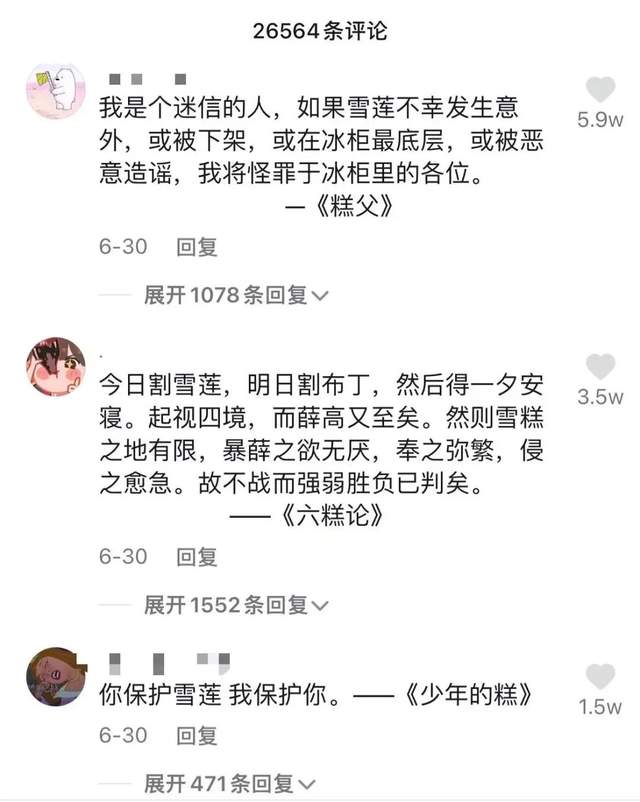 这下更是激发了网友们野性消费的冲动。短短5天,雪莲官方抖音账号粉丝突破74万,“雪莲冰块”全网难求。擅长玩梗的网友们,还通过改编名著金句、经典台词、流行歌,创造了一门“雪莲文学”为其打气。