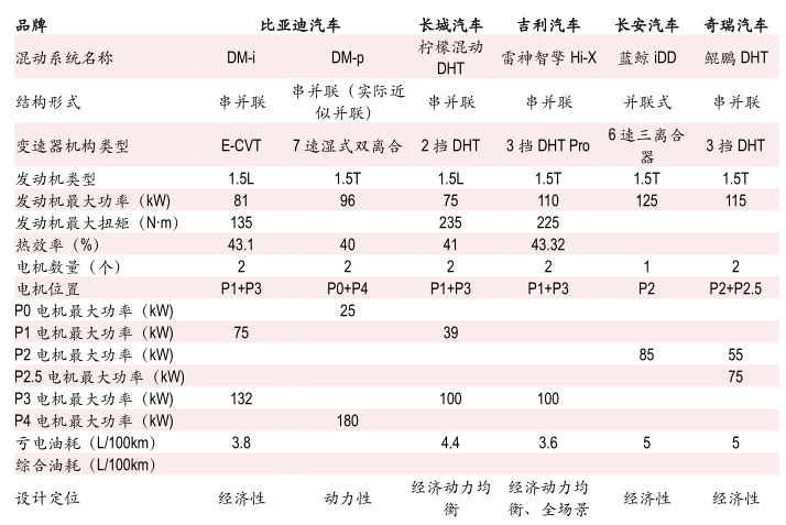 主要车企混动技术参数对比, 资料来源:汽车之家,中银证券