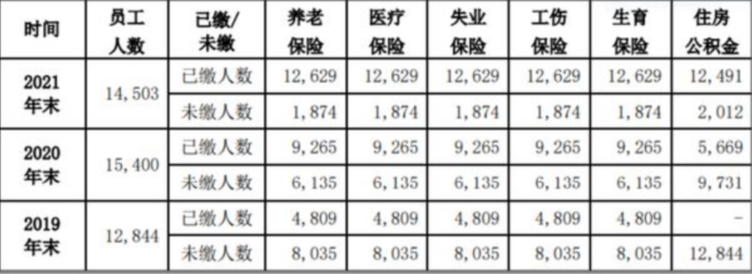 但是他也解释了,“3年1.6万员工未缴社保”这一数据是部分媒体将最近3年未参保人数累加,存在重复计算问题,所以导致数据出现了偏差。