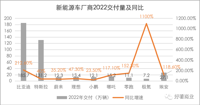 就造车新势力来说,除了几个后起的基数小的品牌,蔚小理在交付增速上都没有跑赢大盘。
