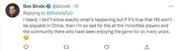 46、有人想起了曾经的《炉石传说》总监Ben Brode,去社交平台上告诉他中国玩家面临的现状。Ben Brode不久便进行回复,他说自己为无法继续享受炉石的玩家社群感到难过。