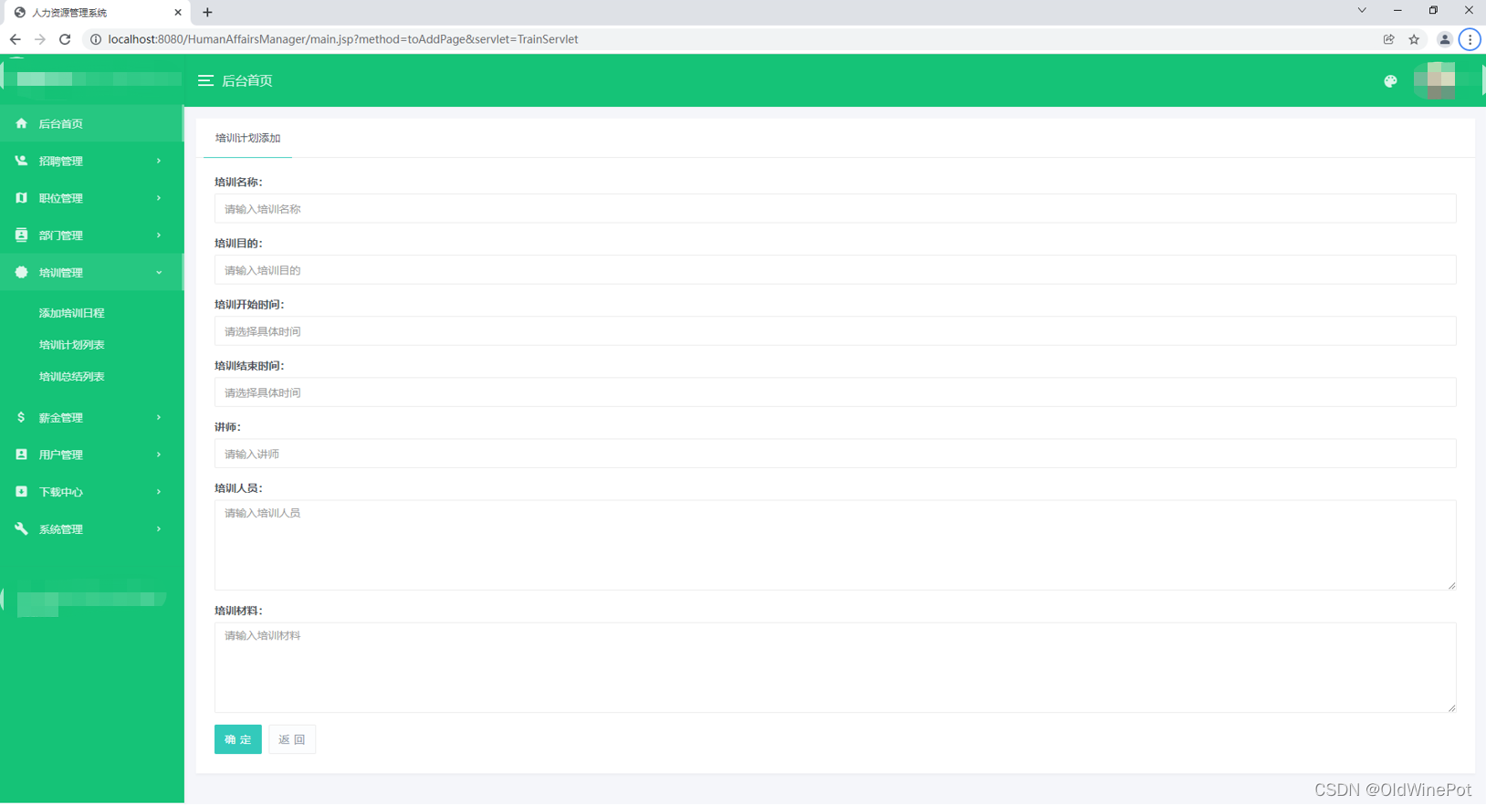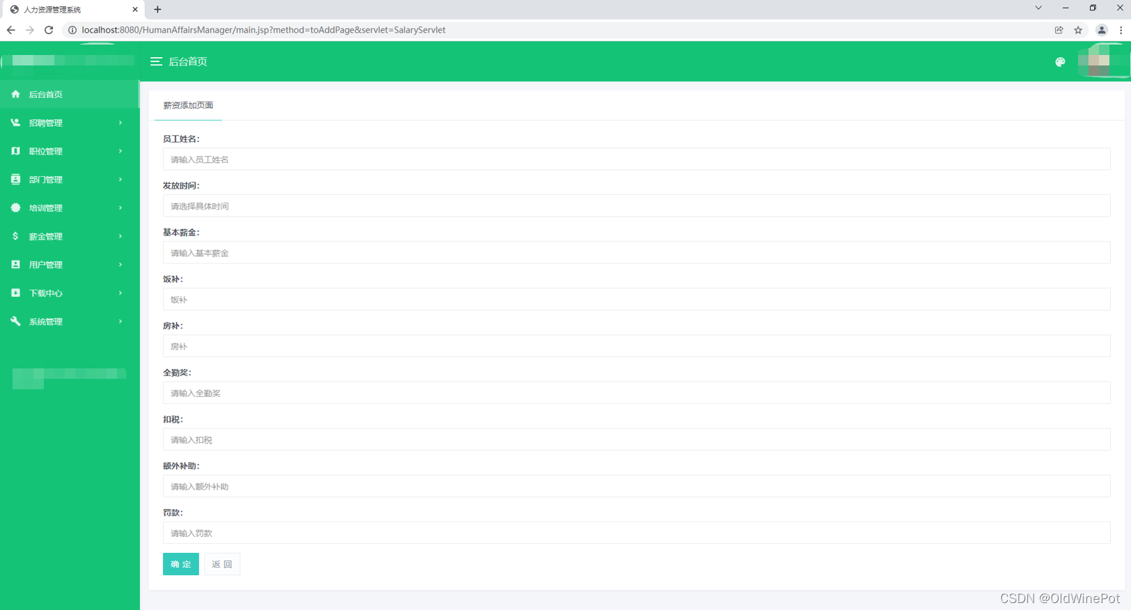 基于Java+Servlet+Mysql+Jsp实现的hr系统,功能很简单就一个角色,功能有:部门管理、职位管理、培训管理、薪资管理、员工管理、招聘管理、公告管理、文件管理等。