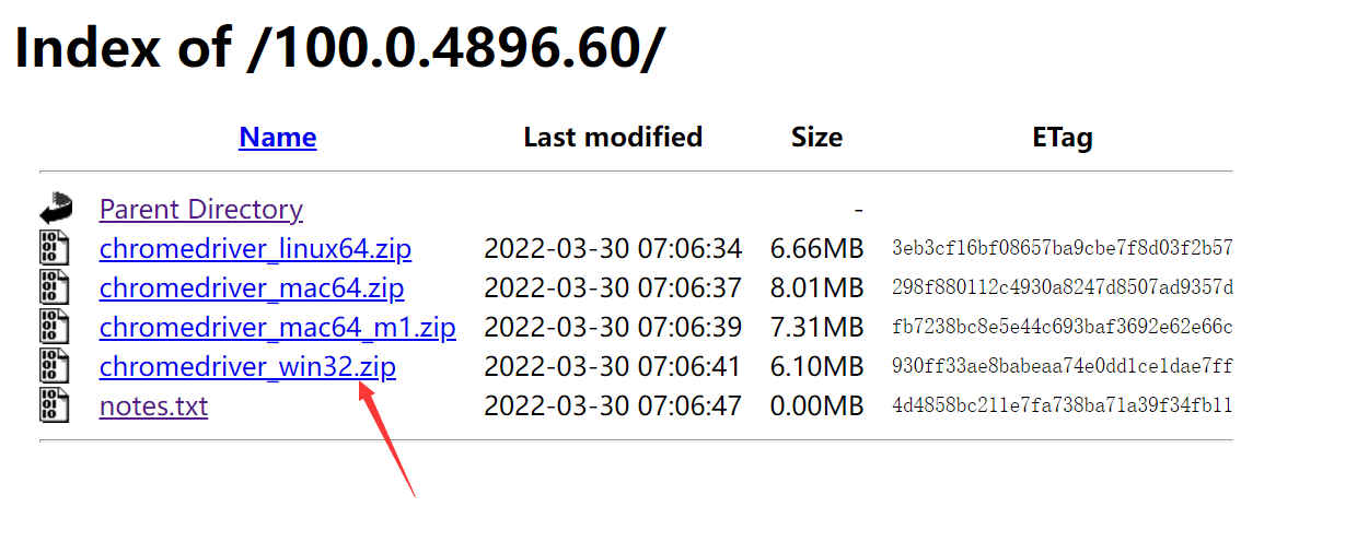下载地址:http://chromedriver.storage.googleapis.com/index.html