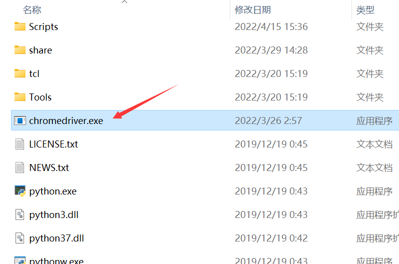 将下载的驱动 ChromeDriver 放到 PYTHON 安装目录 下(PS:非浏览器目录下哈)