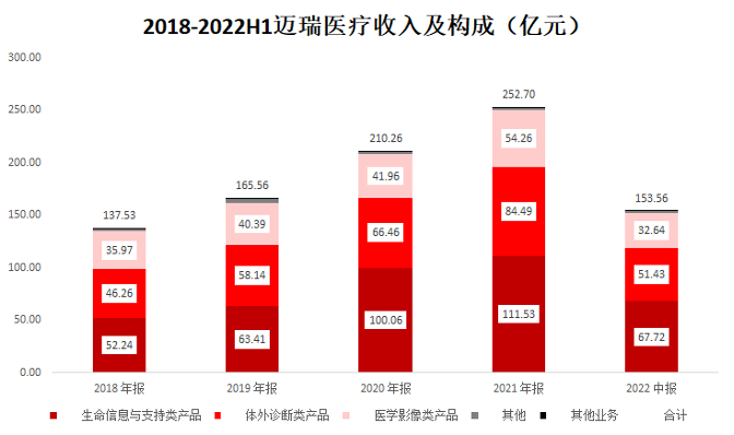 其中,生命信息与支持是公司基本盘,包括监护仪、除颤仪、麻醉机、呼吸机、心电图机等。近两年受疫情影响,国内外的医疗机构大量采购呼吸机等医疗器械助推了这部分产品的销量,但随着疫情影响逐步弱化,这部分产品销量的增速已经开始放缓。