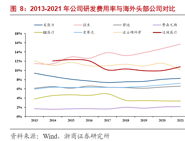 迈瑞早于2000年便开始谋求出海,一开始主要专注于海外的中低端市场,通过性价比优势打开海外市场,随后,再通过并购优质品牌和输出营销网络的方式,进一步拓展海外市场。近年,迈瑞在产品技术也不断寻求突破,结合海外客户需求推出了更多中高端产品。
