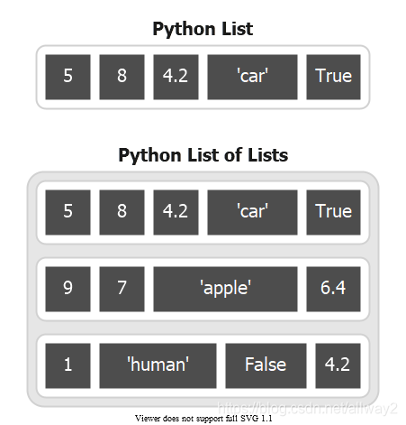 我们存储在内部列表中的元素类型可以独立于其他元素。