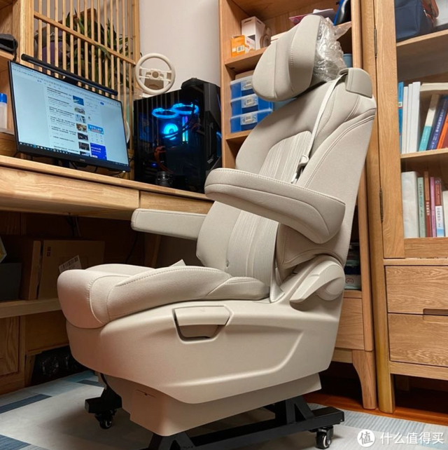 其中,以GL8座椅为例,王文目前手里的ES陆尊653T车型座椅,皮质的680元一个,布面的500元一个,“普通人买回来座椅后,可以给座椅加上带滚轮的支架或者五爪滚轮和气泵,其中,前者需要注意座椅本身的倾角,后者五爪滚轮方案则容易把椅子抬得很高,坐上去双脚离地。”不过,无论哪种改装方案,座椅舒适度都完全吊打市面常见的普通办公椅。