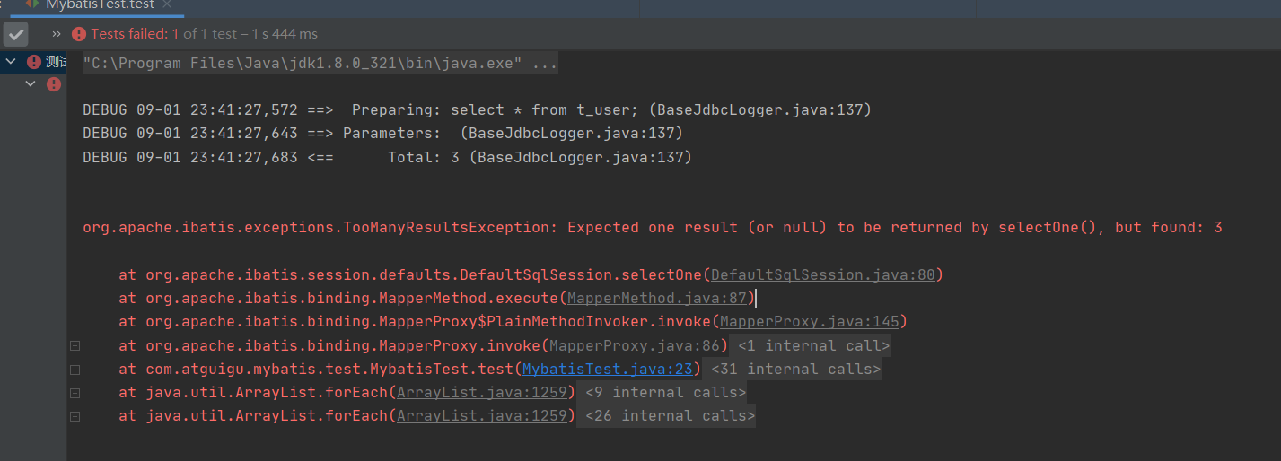 org.apache.ibatis.exceptions.TooManyResultsException: Expected one result (or null) to be returned by selectOne(), but found: 3