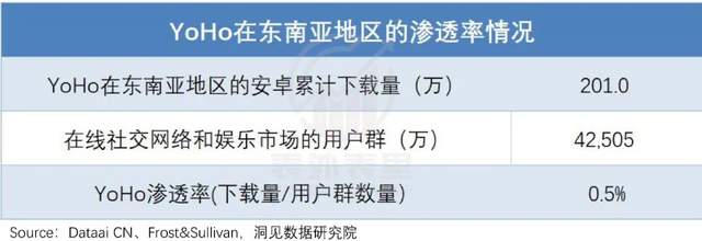 YoHo在该地区的累计下载量渗透率只有0.5%,后续用户增长极具想象力。
