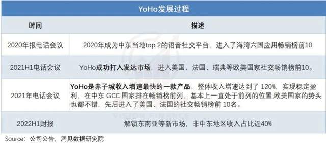 最新一季财报显示:2022H1,YoHo在非中东地区收入占比近40%,推动该产品整体收入同比增长超过70%。