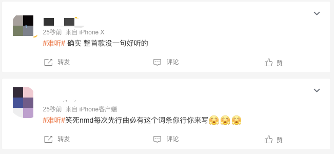 如今每当有“难听”冲上热搜,就能在广场上看到“这次又是谁的歌”的微博,这或许意味着,“难听”的热搜在开始“变味儿”。