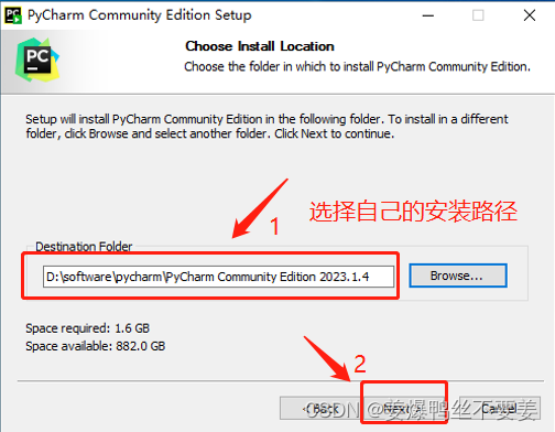 点击** Browse**,选择自己的安装路径(可以事先在D盘建立一个文件夹,记住自己的安装路径,后续多次用到),最好不要安装在C盘!!!然后点击 next