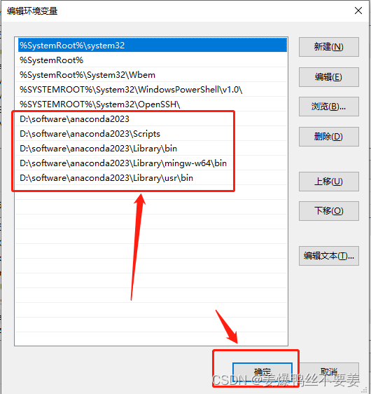 这里要新建5个路径,这个路径是你的anaconda安装的位置,新建完成后点击 确定