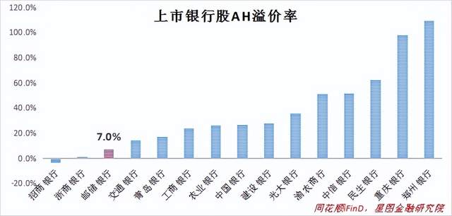 从AH两地上市的银行股溢价率(20220825)来看,邮储银行的AH溢价率(A股股价*汇率/H股股价-1)仅为7%,表明其港股估值折价并不明显,侧面证明其投资价值受到国际投资者认可。