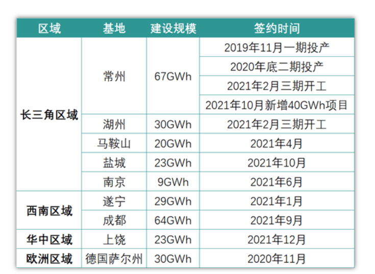 (蜂巢能源部分规划产能)